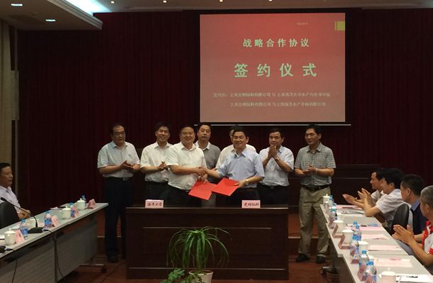 2014年6月20日下午,冰球突破mg正规官网和上海光明饲料有限公司战略合作协议签约仪式在上海崇明光明米业有限公司举行。冰球突破官网校长助理兼冰球突破mg正规官网院长李家乐和光明饲料有限公司总经理林瑞良在协议书上签约。光明集团农发部总经理黄超,光明米业集团董事长项竞文、总裁张国江、副总裁赵国峰,光明集团长江总公司党委书记潘洪、副总经理李年宝,光明特种水产公司总经理李有清、书记王月滨,冰球突破mg正规官网水产系副主任黄旭雄教授、吴旭干副教授、杨志刚副教授,以及相关领导出席签约仪式。