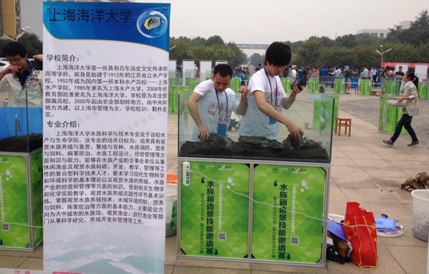 2014年10月17日至19日,由国家级水产科学实验教学示范中心主办、华中农业大学水产学院承办的全国大学生水族科学与技术专业水族箱造景技能邀请赛在华中农业大学举行,来自冰球突破mg正规官网、大连海洋大学、湖南农业大学、上海应用技术学院、河南师范大学、青岛农业大学、天津农学院等7所高校的学子参加比赛。冰球突破官网2012级冰球突破mg正规官网学生孙健、李军涛在徐灿老师的带领下参加了此次比赛。