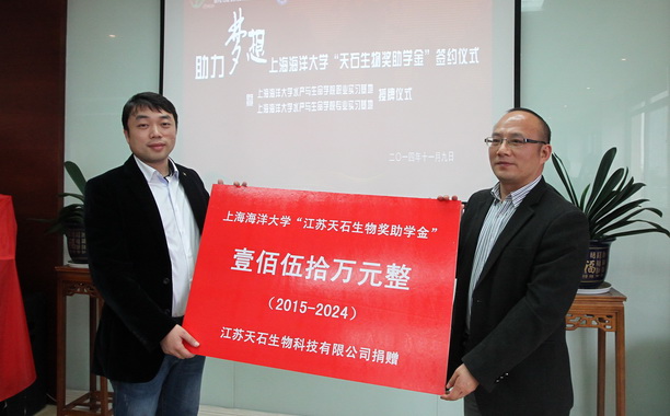 江苏天石生物科技有限公司向冰球突破官网150元设立奖助学金