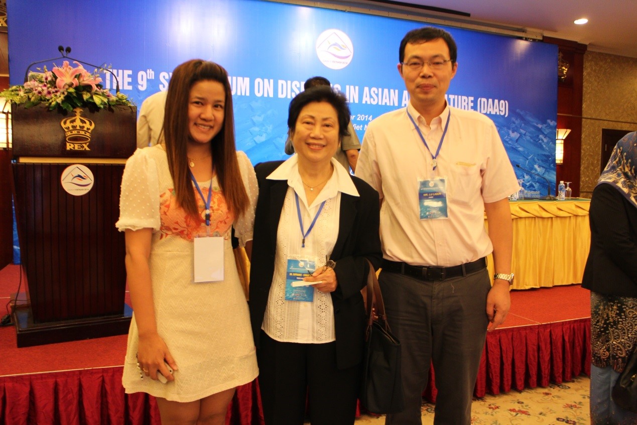 2014年11月23日-29日,应亚洲渔业协会(AFS)鱼类健康部(FHS)和越南农业与农村发展部(MARD)动物健康局(DAH)的联合邀请,冰球突破mg正规官网吕利群团队一行四人:吕利群(教授)、许丹(讲师)、王浩(博士生)、Patarida Podok(博士生)赴越南胡志明市参加“第九届亚洲水产养殖疾病研讨会”学术交流。