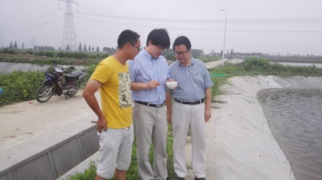24日上午,服务团一行马不停蹄来到练塘镇上海泖河水产品专业合作社白对虾养殖基地,黄旭雄教授等详细询问了该合作社养殖情况、发展状况、存在技术难题等,对该合作社现阶段白对虾苗种标粗环节、分塘环节、底质调节等给予关键性指导并对合作社和养殖户提出的问题一一耐心解答,直到满意为止。最后,黄旭雄教授再次叮嘱养殖户,梅雨季节的天气阴雨连绵,对南美白对虾养殖管理是个极大的挑战,养虾要安全度梅雨,必须预防在先,在培藻稳水,净底足氧,硬壳壮虾,抑制弧菌等方面做好预防。具体操作环节要适当控料,做好持续改底增氧、补菌补肥等措施,保持虾塘水体微生态及对虾免疫机能的相对稳定,从而让养殖白对虾安全渡梅,为全年对虾养殖成功奠定基础。
