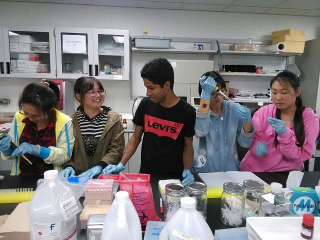2015年7月26日至8月15日由冰球突破mg正规官网与美国威斯康星大学斯托特分校(University Of Wisconsin - Stout)联合举办的为期21天的暑期游学活动“生物保护学研究学习项目”已顺利结束。在李晨虹老师的带领下,学员们于当地时间7月26日晚到达美国。7月27日Mike Bessert博士讲述有关铲鲟保护的讲座后,学员们的学习正式开始。学习主要内容分为野外数据收集(包括仔鱼的采样与鉴定、河流水样的理化指标的测定)和实验室分子生物技术(包括溪刺鱼的DNA提取和微卫星分型)。学员们在学习中,一步步提高自己,在老师的帮助下,最终成功完成了实验,不仅学到了理论知识,同时也获得了实践技能。