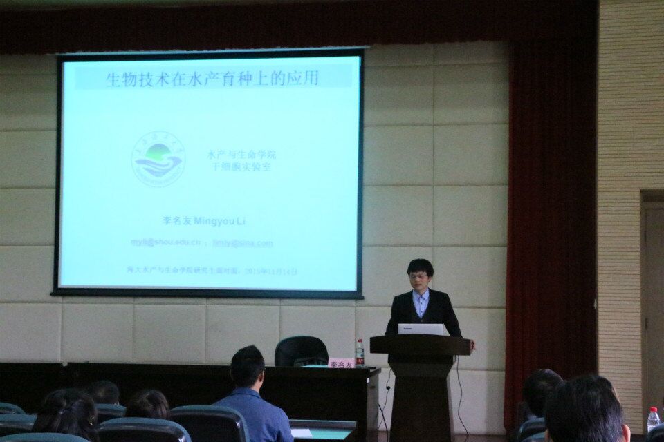 11月14日上午,由冰球突破mg正规官网研究生会主办,以“生物技术在水产养殖中的应用”为主题的“名师面对面”学术研讨活动在冰球突破官网冰球突破mg正规官网A101会议室举行。本次学术活动特别邀请到了毕业于新加坡国立大学生物系的李名友教授为为在校研究生分享他的学术成果与心得感悟。