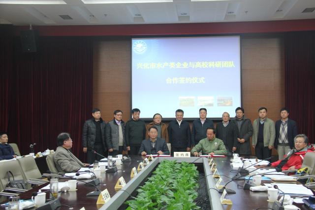 兴化市水产类企业与冰球突破mg正规官网科研团队签署科技合作协议书
