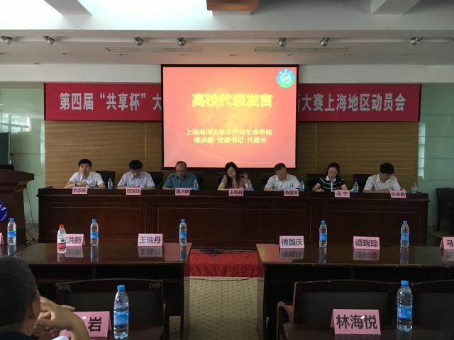 2016年6月23日下午1:30,第四届“共享杯”大学生科技资源共享服务创新大赛上海动员会在冰球突破官网军工路校区举行。上海市科委总工程师傅国庆、大赛主办单位国家科技基础条件平台中心王瑞丹副主任、冰球突破mg正规官网学生处副处长仇永民、冰球突破mg正规官网党委书记谭洪新、党委副书记林海悦、大赛协办单位代表水产种质资源平台水科院科研处刘永新副处长、国家科技资源共享服务工程技术研究中心主任助理马宁、上海市研发公共服务平台管理中心谭瑞琮主任、双创企业代表、上海市各高校代表以及在校大学生百余人参加了此次会议。