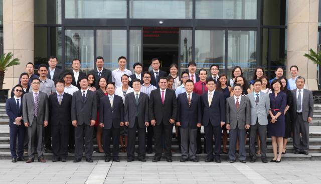 开班仪式由副校长吴建农主持,吴副校长向研修班的顺利开班表示了祝贺,向法属波利尼西亚部长一行及天瑞投资集团管理有限公司对于促成此次合作表示了感谢,同时鼓励同学们认真学习,半年后能够顺利完成学业,让才能得到发挥。