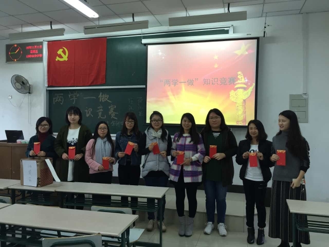 2016年11月11日下午1点,为扎实开展“两学一做”学习教育,进一步提升我支部党员对党章党规和习近平总书记系列重要讲话精神的理解,争做一名合格党员,生研15四支部开展“两学一做”知识竞赛于2教108教室举行。每位同学都积极参与到本次知识竞赛中,以赛促学推进学习教育持续深化,寓教于乐,收获颇丰。