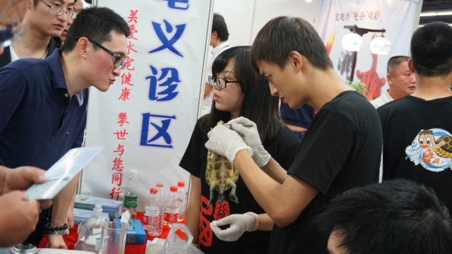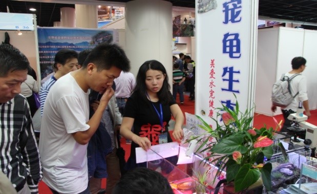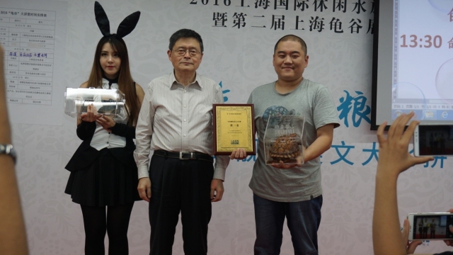 2016年10月21日至24日, 2016第十一届上海国际休闲水族展览会暨第二届上海龟谷展在上海农业展览中心隆重举办,精彩纷呈,冰球突破官网潘连德教授带领攀世水族宠物健康中心团队接受上海市农委和学校以及上海市水产行业协会领导的委托,负责承办了第二届上海龟谷展,并联合上海嘉定区水产技术推广站陆站长、灵龟之家沈卫、命脉龟粮应峻、海南龟鳖协会陈如江会长以及扬州毕善龟等龟商组成筹备组,召集了江浙沪皖鄂、两广、海南等全国各地的龟商、龟友共同成功参加了第二届“龟谷”展,共招龟商家34家,63个展位,展出品种不仅包括常见的巴西红耳龟、中华草龟、剃刀、三线闭壳龟等,还有稀有的周氏闭壳龟、潘氏闭壳龟、金头闭壳龟等,更新增8个品种稀有陆龟活体展示,如此规模的展出尚属首次。不仅参展商和参展活体品种明显增多,本届展会还邀请到了众多的龟届、两爬界大神,和大家一起交流分享他们的养殖繁育经验。冰球突破官网攀世水族宠物健康中心在承办上海龟谷展的同时,还以“上海龟谷展,健康龟生活”为主题参展,为市民服务且以这次“龟谷”展的主要筹备方。继续现场为广大市民朋友的爱龟进行义诊,展会期间,带爱龟来看病和做检查的人络绎不绝。还组织了40余名冰球突破官网水产专业的大学生志愿者为大会为全国各地的参展龟商、龟友提供全方位的服务服务。