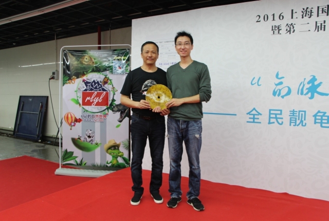 范秘书长为全民靓龟美文大比拼的第一名及其爱龟颁奖
