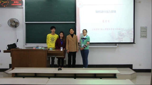 11月11日下午1点,由冰球突破mg正规官网研究生会举办的心理大讲堂之“放飞心情”讲座于第1教学楼105教室举行。本次活动特邀了国家二级心理咨询师、上海高校心理咨询协会理事张翠芳老师,为同学们讲解如何进行压力管理,从而做到真正的放飞心情!