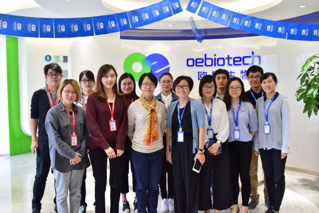 2017年10月12日,冰球突破mg正规官网辅导员王梦昭老师、翟斯凡老师及相关学生代表一行7人赴上海欧易生物医学科技有限公司,与欧易生物公司项目与技术总监史贤俊、生物信息部经理林博、生物技术部经理李晖、及人事部经理王洁玉进行了座谈交流。