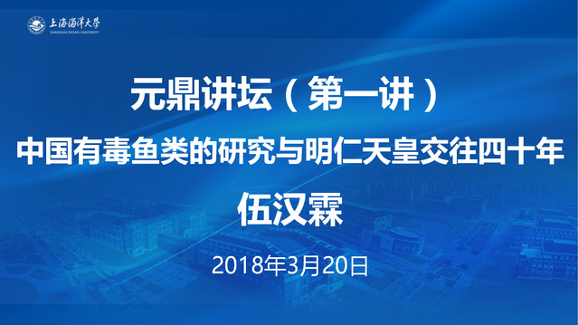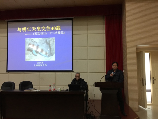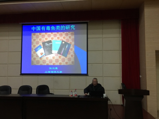 84岁高龄的伍汉霖先生开讲“元鼎讲坛”第一课。他从与日本明仁天皇交往40载讲起,讲述了自己这40年间5次访日,12次受到日本明仁天皇接见的人生经历。伍先生与明仁天皇同为研究鰕虎鱼的专家,通过探讨学术,一同以科研为媒,建立起了深厚的友情,历经40载,情谊永留存,至今伍先生每年还会收到明仁天皇寄来的贺卡。紧接着伍先生讲了自己在中国有毒鱼类方面的研究,伍汉霖教授是迄今国内极少数研究有毒鱼类和药用鱼类的专家之一,有毒鱼类危害人们的生命,是社会一大公害。伍先生自上个世纪60年代开始就从事有毒鱼类如鲀毒鱼类、珊瑚礁鱼毒素、血清毒鱼类、胆毒鱼类、刺毒鱼类等的研究,在这方面有许多发现和创新。伍先生为大家讲解了哪些鱼类有药用价值,哪些鱼类有毒,如何预防,并传授大家食鱼或被鱼刺伤中毒的一些应急治疗方法。
