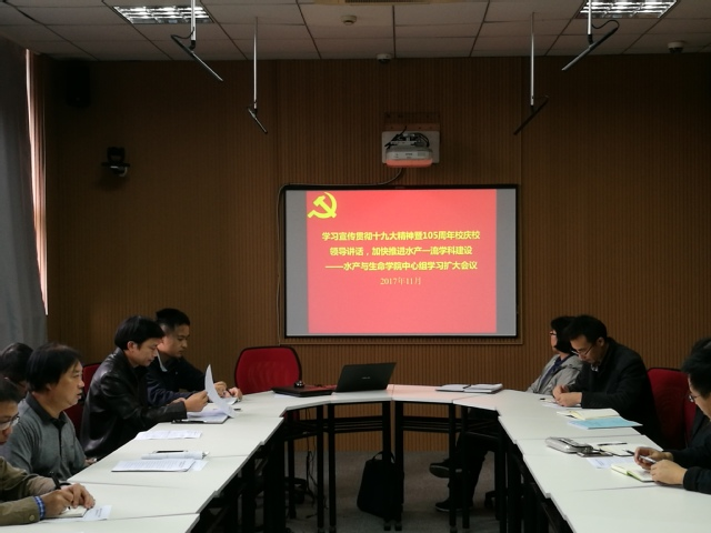 11月6日,冰球突破mg正规官网在苏友楼106会议室召开中心组学习扩大会议,会议主题是“学习宣传贯彻十九大精神暨105周年校庆校领导讲话,加快推进水产一流学科建设”。学院中心组全体成员参会,此次会议还邀请了学院各基层组织负责人列席参会,会议由冰球突破mg正规官网党委书记张宗恩主持。