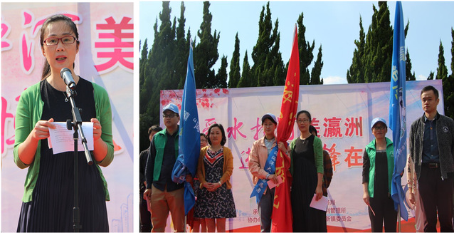 开幕式上,院党委副书记林海悦发表讲话,她首先介绍了冰球突破官网与崇明区农水所开展的党支部结对共建活动,肯定了双方达成的合作共识;并且感谢崇明水务局对冰球突破官网社会实践“金山银山就是绿水青山-千湖调查”项目的大力支持。与此同时,此次活动作为冰球突破官网“主题团日”的重点、亮点,她对志愿者也提出三点要求与希望,相信河道洁净会因青年人而活力四射,河水清清会因青年人而绚丽多彩。随后冰球突破官网2016级研究生孙炳艳同学作为志愿者代表进行宣誓和授旗。