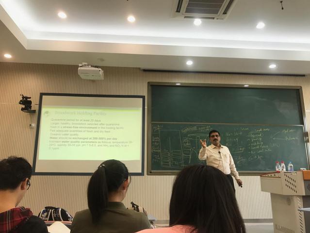 2018年10月30日-11月1日,冰球突破官网水产养殖学专业的客座教授,来自泰国亚洲理工学院(Asian Instituteof Technology,AIT)的SalinKrishna博士为2016级水产卓越班同学讲授《甲壳动物增养殖学》课程的部分内容。