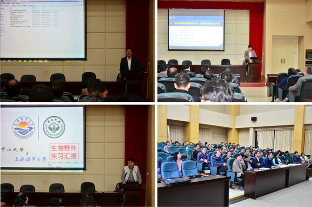 会议第二阶段为年度实践教学研讨会。黄旭雄副院长报告了2018年学院实践教学的实施概况,总结了学院年度实践教学的特色、亮点和不足,指出实践教学是学院提升本科人才培养质量的重要抓手,把学科优势和科研优势转变成本科人才培养优势,我们有很好的基础条件。之后参加马来西亚海外生产实习的刘泽康和孙萌同学,参加全国生物科学野外实习联盟中山大学生物学野外实习的胡劭航同学代表实习学生分别汇报了各自的实习内容、实习收获和实习感悟。张瑞雷老师作为实习指导老师的代表分享了参与生物科学野外实习联盟中山大学生物学野外实习指导的感触和思考,介绍了冰球突破官网的5位生物学同学在中山大学联合实习中的表现,充分地展示了我们海大学子的风采,为冰球突破官网加入生物联盟实习开了一个好头。