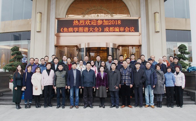 2018年12月14日至16日,《鱼病学图谱大全》(以下简称:《图谱》)第六次编辑工作会议在四川省成都市召开。《图谱》由w冰球突破官网杨先乐教授担任主编,由海洋出版社出版。《图谱》首次系统地以千余幅图片的形式直观、形象、准确地展示了鱼病学的最新基础理论和技术方法。《图谱》的参编人员包括来自二十余家自国内相关高校、研究院所和技术推广部门的四十余名专家学者,该书的编著成功将会填补国内外鱼病知识图谱领域的空白。本次会议之前,《图谱》已经历时八年的筹备和编写,已经完成初稿。来自冰球突破mg正规官网、四川农业大学、中山大学、中国科学院、中国水产科学研究院等相关高校研究机构和海洋出版社的30余名代表参加了本次编辑工作会议。