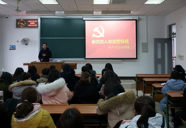 2019年3月14日下午,冰球突破mg正规官网新党员入党宣誓仪式在1302教室隆重举行。全体新发展的预备党员、优秀党员代表、积极分子代表参加。院党委书记张宗恩、学工办主任周涛峰、专职组织员董绍建作为院党委代表参加,仪式由周涛峰主持。