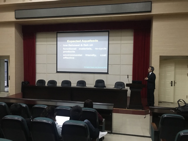 Koshio 教授应邀对2017级水产专业本科生围绕《水产动物营养与饲料学》进行了全英文授课,并针对全院学生开设了相关知识讲座,在一定程度上拓展了学生的国际视野。邀请国外一流师资参与冰球突破官网水产养殖核心课程建设和本科生授课,是推进冰球突破官网“水产双一流”学科建设的重要环节。
