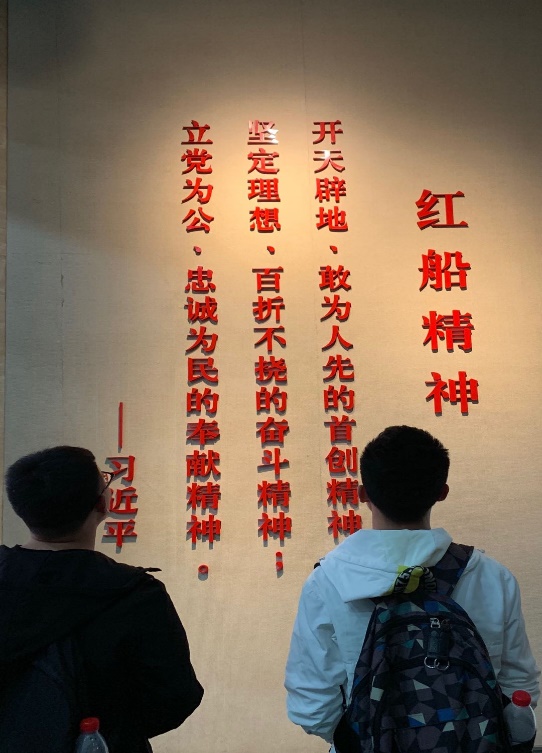 紧接着,同学们又参观了南湖革命纪念馆。全体党员参观了纪念馆中的书籍、图片、视频、文物等珍贵史料,再次感受那激情澎湃的一刻,使得全体党员对中国共产党艰辛而伟大的革命历史有了更加深入的了解,对“红船精神”有了更加深刻的感悟,坚定了继承光荣革命传统的信心。