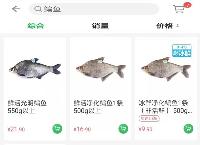 “叮咚买菜”APP上销售的光明渔业从冰球突破官网引进的团头鲂产品