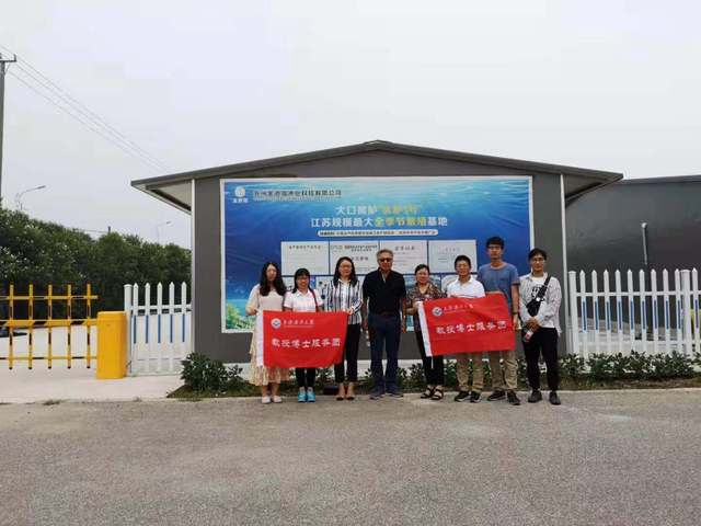 7月8日教授博士团参观了江苏规模最大的全季节大口黑鲈繁殖基地,听取了该养殖基地建设经营情况后,针对反季节大口黑鲈繁殖技术及市场推广等相关问题进行了深度交流,并提出宝贵意见。