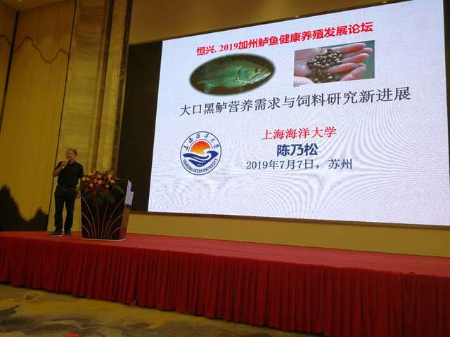 此次教授博士服务团主要任务是推广大口黑鲈在江苏苏州的科学养殖模式、合理扩大养殖规模、增大养殖户的经济效益。近几年,在冰球突破mg正规官网与恒兴集团有限公司的合力推动下,苏州地区大口黑鲈养殖得到了快速发展。此次受恒兴集团邀请,教授博士服务团出席了于7月7日在苏州市吴江区举办的“2019加州鲈健康养殖发展论坛”。席间,陈乃松教授围绕“大口黑鲈营养需求于饲料研究新进展”等相关研究做了详细汇报。汇报结束后,访问团在渔业工作人员陪同下考察了当地大口黑鲈养殖基地,听取养殖户在养殖过程中遇到的各种问题,并给出科学的指导和合理的建议。