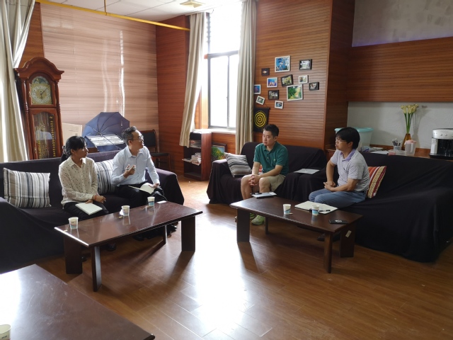 首先,黄旭雄代表学院对泰国两位专家的来访表示热烈欢迎,并着重介绍了学院几个科研团队在藻类学研究领域的基本概况。Wongsa-Ngasri介绍了来访交流的目的,并详细介绍了泰国水产业中“海水小球藻”的培养、电极法收获,以及作为浮游动物(甲壳类)饵料的应用概况。接着,黄旭雄介绍了该团队在藻类饵料生物和藻类去除水体氨氮方面的研究;周志刚介绍了该团队在微藻油脂合成代谢及其调控机制方面的研究;孙诤介绍其在藻源类胡萝卜素、三酰甘油合成等研究概况;张玮介绍了其在藻类多样性和养殖水体藻类水华防控方面的研究概况。双方就水产中高效藻株筛选、大规模培养、采收和后续加工应用,以及响应我国“一带一路”战略,联合申报国际合作科研项目等方面进行了广泛的探讨,并形成共识。此次交流访问给来访人员留下了深刻的印象,加深了双方的认识,为后续双方进一步合作奠定了基础。