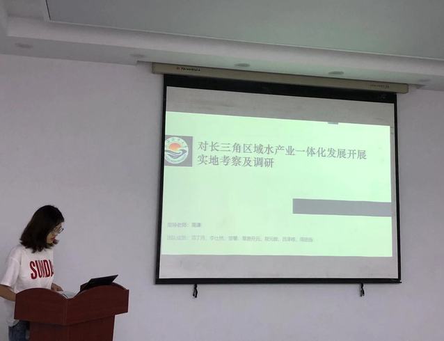 汇报的六个小组分别以“稻渔综合种养”、“循环水养殖”、“河道治理”、“长三角区域水产一体化”、“渔民上岸就业”、“长江经济带鳊鲂鱼类调查”为主题,分别从活动背景、前期准备、实践过程、调研结果、调研反思等角度介绍其项目成果,并分享了他们在实践路上的酸甜苦辣,感染了在座的每一位。每位答辩人员讲解完毕后,评委们就调研过程提出问题及向团队提出改进措施。