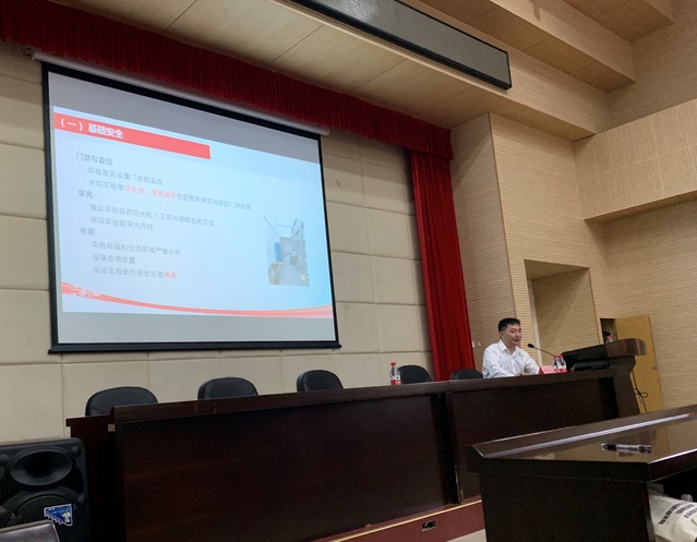 曹同成副教授给大家普及了很多实验室安全知识,希望老师和学生们切实提高安全意识,认真做好实验室风险分析和防控措施,消除安全隐患。