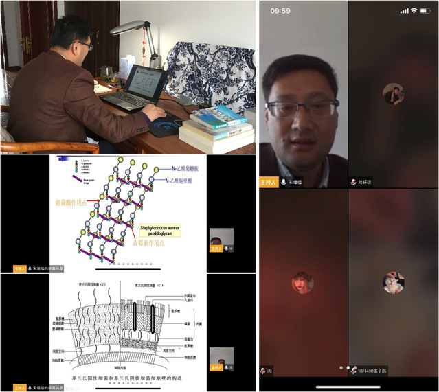 宋增福老师是水生动物医学专业的专业负责人,对于水生动物医学专业的学生非常热心,对于自己教授课程《水产动物病原微生物学》也具有非常高的热情。宋老师也是选择全程用第三方平台直播的方式进行教学,为了确保与学生的互动顺畅,宋老师提前学会了使用白板、语音切换与互动、作为课程的主持人,教学过程可以对学生进行点名并语音回答问题,非常有效和顺畅完成了该课程三次课的进度。宋增福老师的在线直播课,接受了学校领导、教务处孙处长、王处长的督导,给予很高的评价。