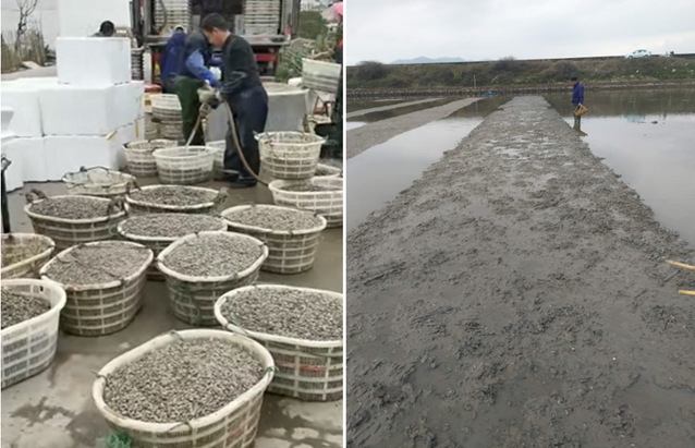 缢蛏“申浙1号”新品种蛏苗运输和播苗工作