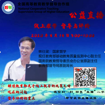 为帮助各高校教学督导员了解政策、提升业务水平,全国高校质量保障机构联盟4月3日举办了“线上教学质量督导、评价和监控专题研讨会”;全国高等教育教学督导协作组于4月14日举办“线上教学督导与评价”公益直播报告,特邀国家督学、国务院教育督导委员会办公室原副主任林仕梁解读“两办”督导文件、现在的问题及督导评价的重点。