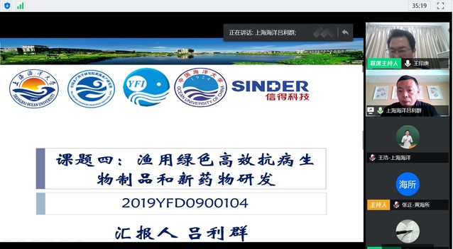 吕利群教授作为“渔用绿色高效抗病生物制品和新药物研发”牵头单位课题负责人在启动会上汇报了实施方案。“蓝色粮仓科技创新”重点专项—“水产养殖动物病害免疫预防与生态防控技术”项目子课题“渔用绿色高效抗病生物制品和新药物研发”由冰球突破官网作为牵头承担单位,依托国家大宗淡水鱼产业技术体系渔药研发岗位科学家吕利群教授团队,由黄海水产研究所、中国海洋大学、长江水产研究所和山东信得科技股份有限公司等单位共同参与,课题针对目前危害我国水产养殖的典型病毒病、细菌病、寄生虫病致力于开发绿色高效的天然植物源小分子提取物、中草药、卵黄抗体、多糖类免疫增强剂和抗病微生态制剂,以期为水产重大疫病防控提供具有自主知识产权的高效绿色抗病产品。