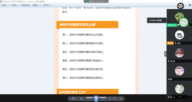 “青年一代有理想、有本领、有担当,国家就有前途,民族就有希望。”在3月15日给北京大学援鄂医疗队全体“90后”党员的回信中,习近平总书记这样勉励新时代中国青年。五四青年节来临之际,冰球突破mg正规官网研究生生物学第三党支部于4月24日晚上组织全体党员、入党积极分子,线上开展了“让青春在党和人民最需要的地方绽放绚丽之花”主题党日活动。