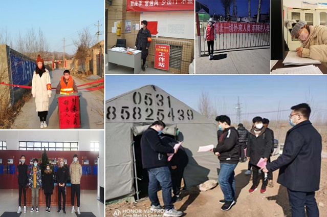 留校党员符策峰按照学校临时党支部要求,对学院各个楼层和实验室进行定期检查,保证疫情期间学院各实验室的正常运转。赵悦在河北石家庄当地村委会的组织号召下,主动担任村组防疫工作,村口轮班执勤,按区域向村民分发疫情防控告知书,定期发放防疫物资,筛查统计外出人员等工作有序开展,在他们这批志愿者的努力下,做到了全村900多户4700多人的信息及健康状况都记录在册。“作为一名当代青年,我特向组织申请,接受我的请战要求,为我分配任务,让我到防疫一线去。我一定会发挥青年先锋作用,为家乡父老乡亲服务,在疫情防控工作中勇担重任!”1月31日,在村委会的召集下,孙兆盛主动填写请战书,先后进行了多次志愿活动,为全村300多户家庭挨家挨户发放口罩。家住甘肃省白银市大芦镇的葛静远,在成功说服了担忧的母亲后,成为当地社区第二个报名的志愿者。2月4日早上七点钟,室外零下11℃,她冒着寒冷在执勤点开始了自己的第一班岗。当被问到为什么要去做志愿者时,她的回答简单而坚定:“因为我是家乡的一份子,更是一名中共党员,所以我要去。”随着志愿者的增多,她在5天全勤之后转为轮流执勤,她还表示,尽管天气寒冷,但能为疫情防控做点事情,心里总归是满足的。预备党员王璞在得知社区工作人员人手紧张后,积极报名社区服务工作,自2月23日至26日,坚持每天9个多小时的值岗,他说:“作为一名爱国青年,一名中国共产党预备党员,我迫切地希望能给祖国做出自己力所能及的贡献。”值岗过程中遇到不配合人员,他会耐心劝导,不厌其烦地一遍遍给他们讲述防疫知识。