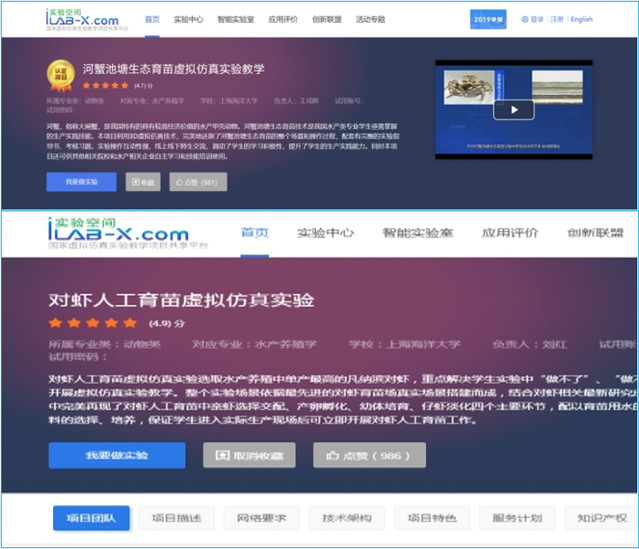 《河蟹池塘生态育苗虚拟仿真实验》自2018年上线服务以来,已连续服务了冰球突破官网2015级,2016级,2017级水产类学生,学生的反响良好,评价高。截止2020年5月22日,河蟹池塘生态育苗虚拟仿真实验的浏览量已达25315人次。河蟹池塘生态育苗虚拟仿真实验教学项目被认定为2018年度国家虚拟仿真实验教学项目后,此项目在“国家虚拟仿真实验教学项目共享平台”(www.ilab-x.com)” 上进行传播和共享使用,截止目前在实验空间上的实验浏览量7350人次,评价4.7分,实验用户的评价高,反响良好。