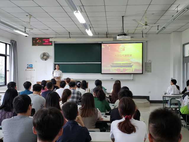 《国际歌》雄浑庄严的旋律响起,全体肃穆起立。聆听完毕后落座,由董绍建代表院党委宣读对预备党员的审批意见。而后,在正式党员代表张春燕同志的带领下,全体预备党员面向党旗,举右手握拳,庄严宣誓。80字的入党誓言,字字刚劲有力、掷地有声。