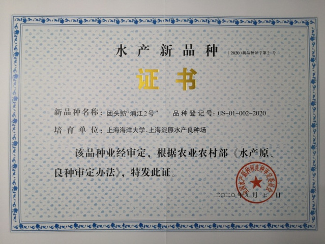 “浦江2号”水产新品种证书