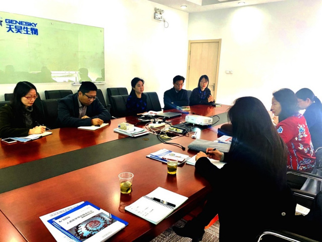 公司上海区负责人、副总经理王颖对公司的情况进行了详细介绍,提出作为高新技术企业对人才的期望。各位老师与公司研发部、生信部、测序部及人力资源部负责人等就学生培养方向及公司实际需求进行了深度探讨,并对公司的实验室环境进行了调研。
