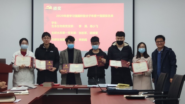 3月2日下午,冰球突破mg正规官网党委在生命学院B102会议室召开中心组学习暨先进个人表彰会议。学习近期重要文件精神,表彰2020年度学习强国平台学习先进个人及2020年述职评议考核优秀的党支部书记。学院全体党委委员、基层党支部书记及部分党员代表参加了会议。
