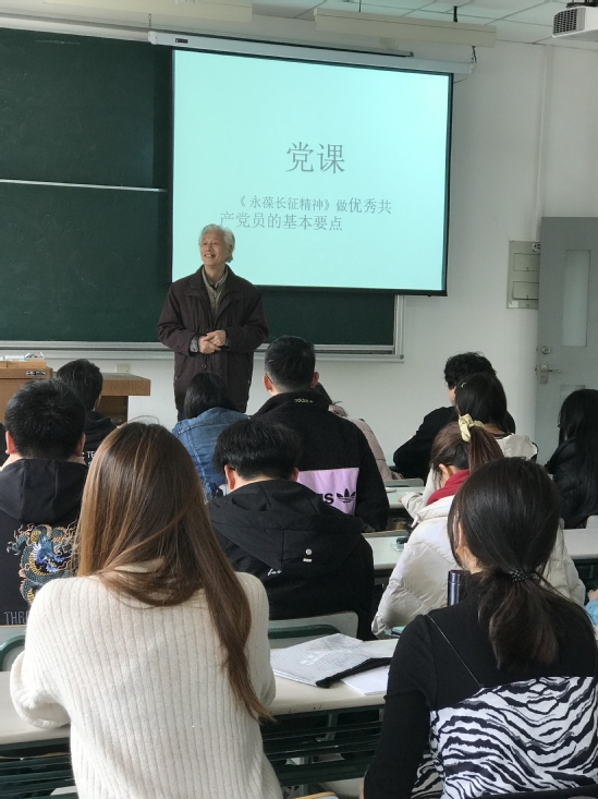 党课开始,康教授首先向在座的各位预备党员和积极分子提问,并叮嘱大家不要去死记硬背理论知识,而是要真正地理解理论知识,明白理论知识到底说明了什么。随后,康教授用他儿子的同学——沪江创始人伏彩瑞从只有8000块钱开始创业,每天工作到两点以后才睡,最后坚持下来取得成功的例子;海大艺术团一位男生坚持不懈,花四年时间最终追到心爱的女生的例子;以及身材并不好的女生为了成为一名空姐,自律锻炼,最终得到第一名的例子,阐明了坚持的重要性。长征最终能取得成功也正是因为老一辈的共产党员的坚持,才能最终取得了成功。