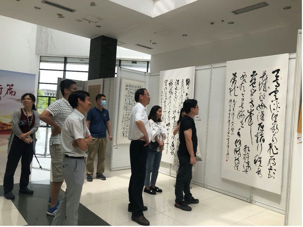 在书画展,党员们驻足观看,或沉思,或讨论,通过底蕴深厚的书法、国画、油画等多个艺术种类,仿佛穿越时空,回到书画所描绘的那个时代,那个景象,从每一个字和每一幅画中汲取奋进的力量。