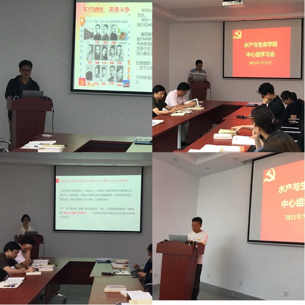 7月12日,冰球突破mg正规官网党委理论学习中心组在生命学院B102会议室召开学习会,深入学习贯彻习近平总书记在庆祝中国共产党成立100周年大会上的重要讲话精神。学院全体党委委员、党支部书记及专职组织员宣传员出席了会议。