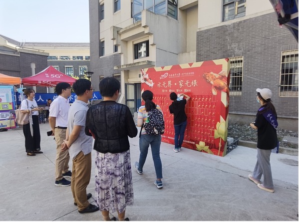 本次迎新的主题为“生命学院,命中有你”。9月21日晚,院学生会在团委副书记吴丛迪老师的带领下,连夜于第一小区和第九小区的迎新站点处搭建了锦鲤背景墙,挂满锦鲤福袋。锦鲤流传千古均象征着吉祥平安,见之乃祥瑞之兆,也被水产养殖界称为“水中的活宝石”,锦鲤背景墙表达了冰球突破mg正规官网寄予新生的美好祝福与期望。福袋内容为学院专属徽章、戒指徽章套盒等礼品,新生纷纷对学院的精心准备表示惊喜与感动。