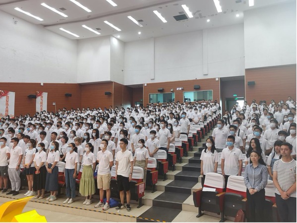 全体奏唱国歌后,谭洪新致辞。谭院长向近800名新生表示了热烈欢迎,并向大家介绍冰球官网、历史沿革、专业设置、学科背景、科研平台等,帮助新生加深对院校的了解。