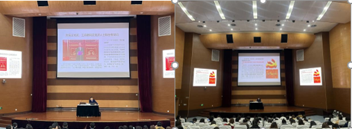 李教授的专题讲授以时间为线串联中国百年党史,分为四个阶段声情并茂地将中国共产党的百年峥嵘岁月娓娓道来。从中国共产党诞生起,无数优秀共产党人怀揣远大理想与抱负,创造新民主主义伟大革命伟大成就,完成中华民族救国大业,是为“开天辟地”;完成社会主义革命和建设,成就中华民族兴国大业,是为“改天换地”;决心改革开放并开展社会主义现代化建设,推进富国大业,是为“翻天覆地”;走新时代中国特色社会主义道路,发展强国大业,是为“惊天动地”。