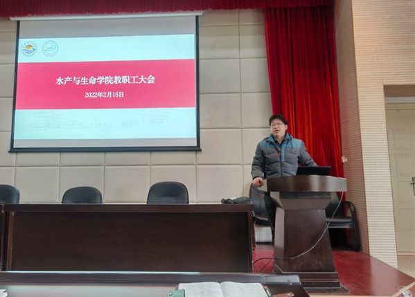 会上,谭洪新院长以“优化学科架构,加快一流学科建设”为主题,就十四五期间学科建设、人员调整和绩效分配方案等作了详细介绍。学院将以水产种质生物学和绿色养殖省部共建国家重点实验室(筹建)为载体,以“水产学+生物学” 双学科为驱动,做大做强水产一流学科;围绕4个学科方向: 1.水生生物多样性保护与利用2.水产种质资源发掘与良种创制3.水产动物免疫与疫病生态防控4.水产绿色高效养殖与营养调控,进一步优化学科架构和调整基层组织。并对2022年学院的人才引进、项目申报、奖项申报和平台建设等重点工作予以讲解和推进。学院的“人才培养、科学研究、社会服务、国际交流”等职能将进一步融合到四个学科方向,构建高水平研究型学院,保持水产 A+ 学科,建成世界一流学科。