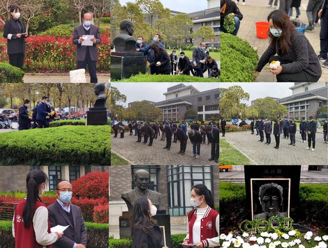 冰球突破mg正规官网楼前,师生身着深色服装,整齐列队,庄严肃立楼前。伴随主持人庄重的讲解下,同学们了解了鱼类学家朱元鼎教授的一生,体会了朱元鼎锲而不舍、精益求精的科研精神。院长谭洪新致辞,表达了对朱元鼎老先生的尊崇,呼吁同学们继续笃行“勤朴忠实”的校训,赓续水产精神,学习朱老先生的钻研精神,不断学习、不断拼搏。副院长陈再忠带领师生擦拭朱元鼎像、清扫周边草坪、花圃,开展除尘、清扫工作。师生们不放过任何一个角落,去除藏匿于缝隙中的杂草,清扫路面上的落叶,精心擦拭朱元鼎老先生的雕像以表敬意。清扫结束后,在副院长陈立婧的带领下,师生们敬献纸花,集体默哀一分钟以缅怀朱元鼎老先生。