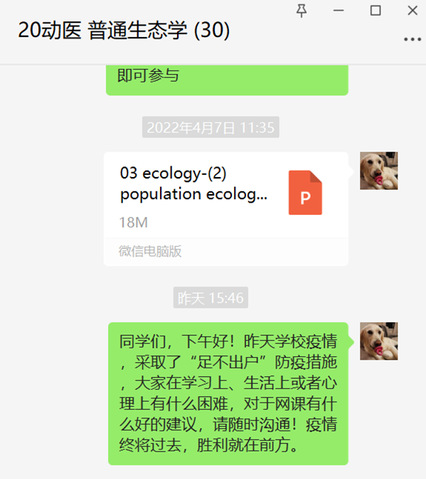 冰球突破mg正规官网水产养殖技术与工程系孙佳敏老师,是一名新入职老师,学校发出实施线上教学通知当天,他迅速按照操作流程熟悉线上教学步骤。他采用“学习通+腾讯会议+微信群”模式开展线上教学,“学习通”不但可以向学生提供学习资料,让学生提前了解授课内容,同时通过习题测试学生自主学习效果,了解学生现有的学习水平,选择有针对性的教学策略。“腾讯会议”搭建网络直播课程,完成网络直播教学过程,给学生提供网络教学的情感支持。“微信群”及时了解学生最新心理状态,帮助学生解决学习生活问题,缓解精神压力、消除孤独感、增强学习自信心。获得了同学们的一致好评。